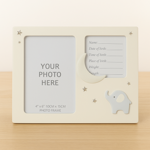 برواز بيانات المولود – قمر وفيل – 10×15 سم
